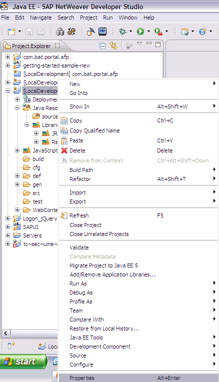 Remember also that you did not copy resources into the Web Module DC. Naturally, you either copy these files from some other project or try to create a simple file with the .xml extension. Yet, you cannot the resolve the deployment error or find an option to set the context root property. If you are in the situation I just described above, make sure that you have created a DC with Java EE Version 1.4. For version 5.0, NWDS does not create both files, and even if you try to copy or create, you cannot deploy the DC. Delete the DCs, revert all activities, and recreate them with Java EE Version 1.4 only. Assuming you have created DCs based on Java EE version 1.4, let’s move forward and make the required changes.