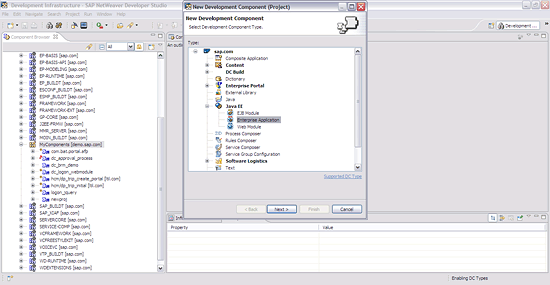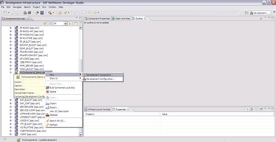 Next, you need to create an EAR DC. Navigate to the Development Infrastructure perspective, right-click MyComponents, and select New > Development Component (