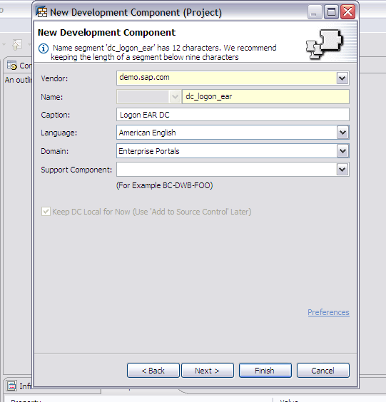 Figure 2). In this configuration, you notice a default component in which you can create DCs needed for the logon page application. Note that you cannot move this development into the NWDI track because all the DCs created in MyComponents are available locally. Nevertheless, the process of creating the DC remains the same as that of NWDI configuration or working with NWDI tracks.