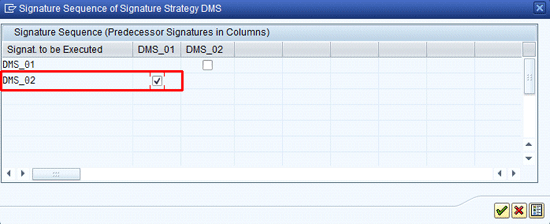 In Figure 13, select the check box in the second row in which both individual signatures, DMS_01 and DMS_02, must be marked for the signature strategy to be declared as complete (Figure 14).
