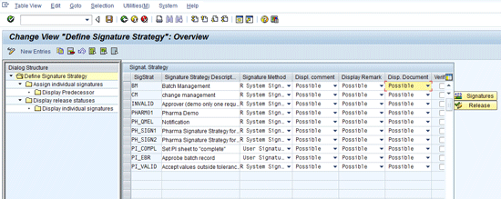 A signature strategy is the combination of different individual signatures that are assigned to an authorization group. A signature strategy also defines the sequence and flow of individual signatures and maintains the predecessor–successor relationships. The signature strategy is used to control the level to which the document can be considered as released. A released status denotes that the digital signature process is complete in every respect.