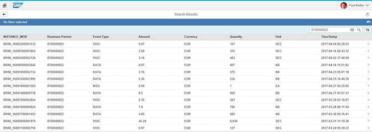 For example, the customer service billing agent may receive a call or email asking about the status of the latest invoice. With SAP Operational Process Intelligence, the agent can locate all the usage events for that customer that are still open or in process by entering the customer ID into the search field in the main cockpit view, which will display all the usage events (or instances) for that customer (see Figure 4).