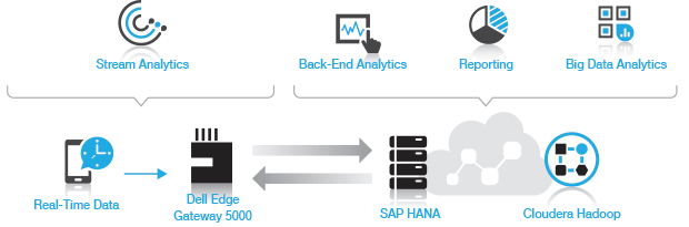 The solution combines Dell Edge Gateways for IoT with SAP HANA and SAP HANA Vora for real-time analytics and Cloudera Hadoop for unstructured data storage (see Figure 1). SAP HANA enables the move from reactive to predictive maintenance and service by analyzing large volumes of operational and transactional data. It provides in-depth insight into asset history and trends to help predict maintenance and service needs.