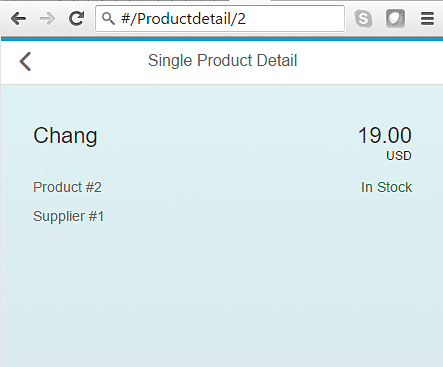 The URL changes to https://__#Productdetail/2 and the ProductDetail view is loaded.