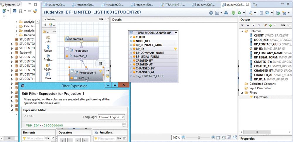 To start, I am creating a view that returns a list of five business partner IDs (shown in Figure 2). This is the view that I use as one of the value help views. I am just filtering the list to five business partners via a hardcoded filter, but ranking or other logic could be used.